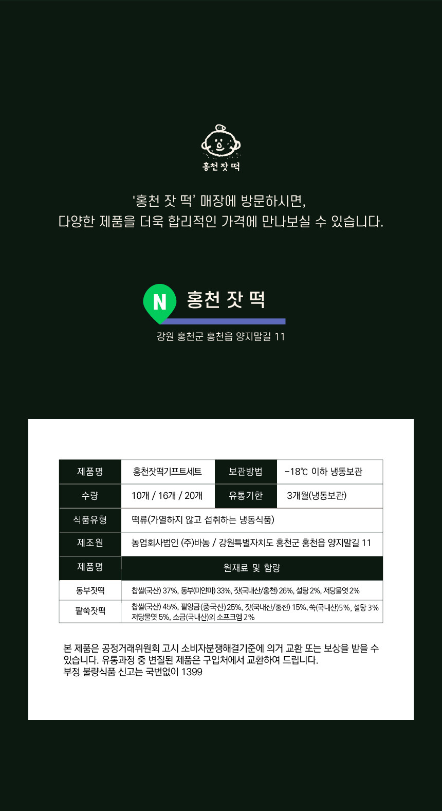 바농 홍천 잣 떡 찹쌀떡 20봉